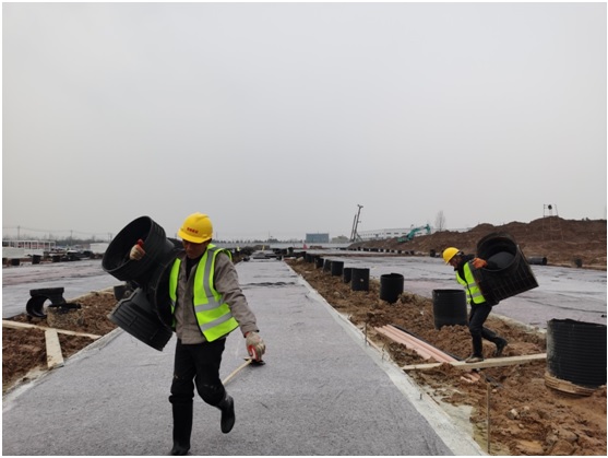 2月1日,農歷大年初一,隔離點項目室外附屬班組施工人員正在進行雨污水管道施工作業(yè),雖然經過節(jié)前加班加點的搶建工作,隔離點項目房屋基礎工程和道路工程已全部完工,但為了保證春節(jié)期間項目現場安全及已完工程的成品保護,項目部安排了春節(jié)期間值班值守及工作部署,全力搶工期、抓進度,確保節(jié)后順利復工和項目早日交付。
