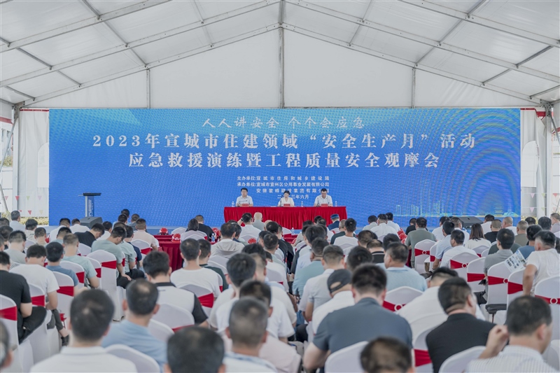 2023年6月28日,宣城市住建領域“安全生產月”活動應急救援演練暨工程質量安全觀摩會在我司高級技工學校建設項目成功舉行。市住建局主要負責人親臨指導,全市各縣(市、區(qū))住建局、市質監(jiān)站、宣城經開區(qū)管委會、宣城現(xiàn)代服務業(yè)產業(yè)園區(qū)管委會市住建局下屬相關單位及全市各縣 (市、區(qū))部分建設、施工、監(jiān)理企業(yè)主要負責人、項目負責人共 300 余人參加觀摩活動。