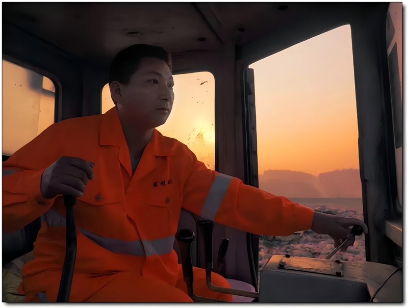 徐開鋒臨危受命,在填埋場當(dāng)推土機(jī)駕駛員。每天的工作就是把400多噸的垃圾推平壓實(shí)。每到夏、秋季節(jié),臭氣熏天的垃圾引來更多的蒼蠅“光顧”,用徐開鋒同事的話說,“遠(yuǎn)看徐開鋒就好像穿了一副‘將軍鎧甲',蒼蠅扒在他的臉上、手上、背上……”彼時(shí)的徐開鋒已經(jīng)是一名7歲女孩的父親,但為了應(yīng)對(duì)繁重的工作,他每天5點(diǎn)鐘就騎著摩托車出了門,等到晚上回家時(shí),女兒多半已經(jīng)睡著了。“領(lǐng)導(dǎo)把我安排到這個(gè)崗位,我就要崗位上做出個(gè)樣!”,正是胸懷這份“執(zhí)拗”,他在填埋場推土機(jī)駕駛員崗位上堅(jiān)持了11年。